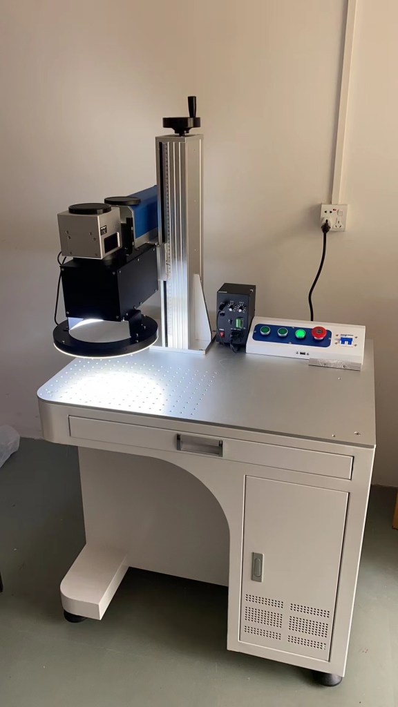 標準型雷射雕刻機,常見雷射源品牌有Raycus、JPT、MAX,波長1064nm,針對金屬標面加工標記。